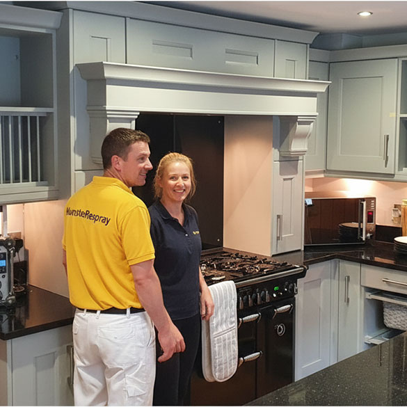 A kitchen respray costs significantly less than a full kitchen replacement because you’re keeping the existing structure.